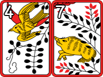 잘 섞은 더미에서 각자 2장씩 패를 나눠 받아 겨루는데 2장의 패의 각 조합에 따라